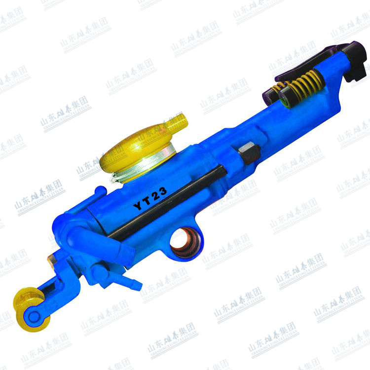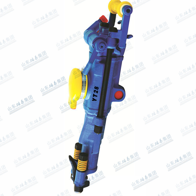 YT28型氣腿式鑿巖機,是一種新型的鑿巖機械。它廣泛應用于采石、開礦、巷道掘進以及各種鑿巖作業(yè)中鉆鑿爆破孔,是礦山、水利、建材、能源、交通、軍工及地質(zhì)工程中不可缺少的重要機具。YT28型鑿巖機適宜于在中硬或堅硬(f=8~18)的巖石上鉆鑿水平、傾斜和垂直炮孔,炮孔直徑一般為34~42毫米,有效經(jīng)濟鉆深可達5米。既可與本公司的FT160型氣腿配套使用,也可裝在鉆車或臺架上工作。本機配有FY200A型注油器,以保證良好的潤滑。